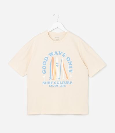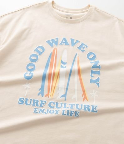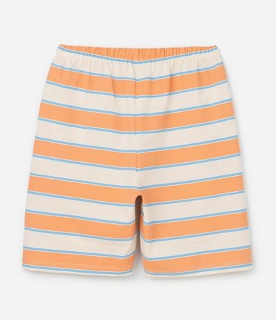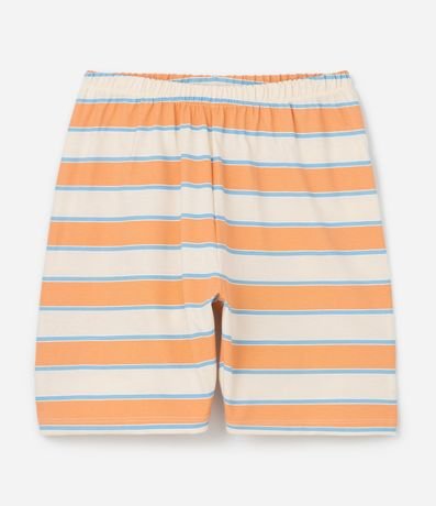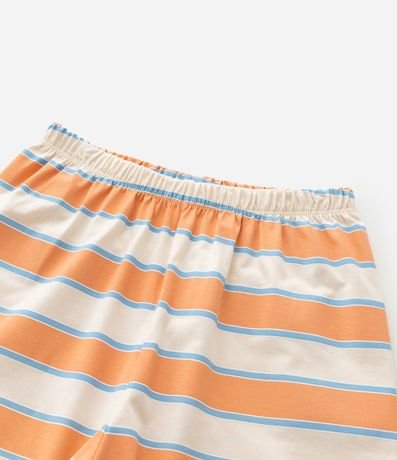 Ref: Conjuntinho de pijama infantil confeccionado em algodão mais sustentável através de boas práticas ambientais, no modelo curto. São duas peças: camiseta com mangas curtas, estampa de surf; e short com cintura elástica e listras.