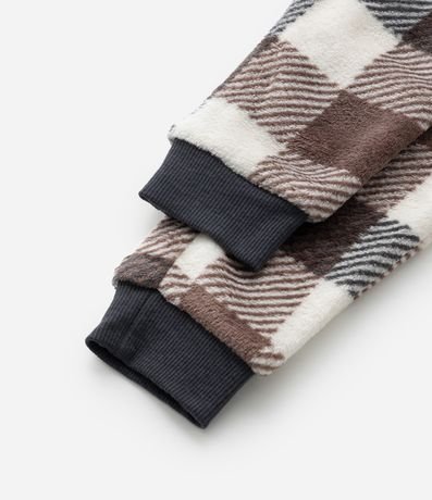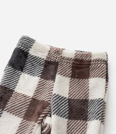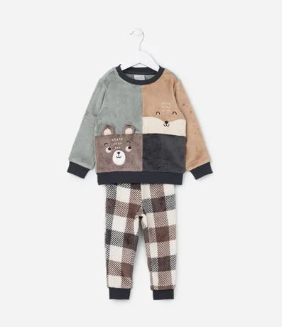 Ref: Pijama infantil confeccionado em fleece quentinho e ideal para dias frios, composto de camiseta manga longa e calça. Possui bordadinho de raposinha e urso na frontal, e calça com estampa xadrez.