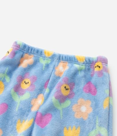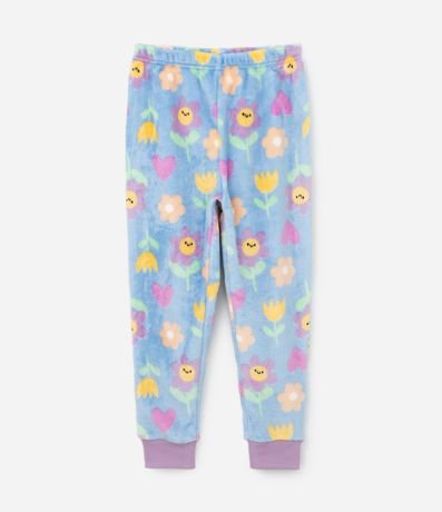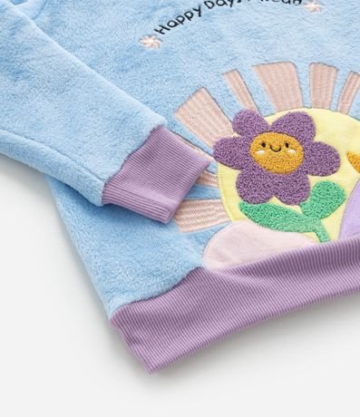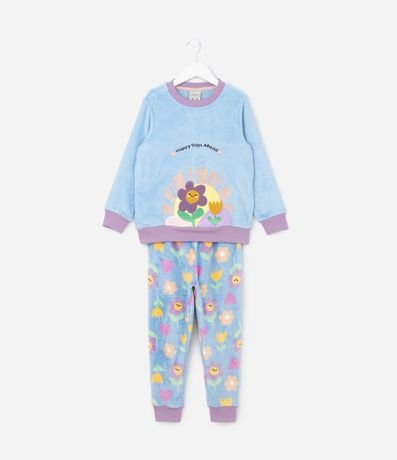 Pijaminha infantil confeccionado em fleece quentinho, ideal para dias frios. Possui blusa com gola redonda, mangas longas e bordado de florzinha sorridente com sol, já a calça possui cós elástico e estampa de florzinhas.