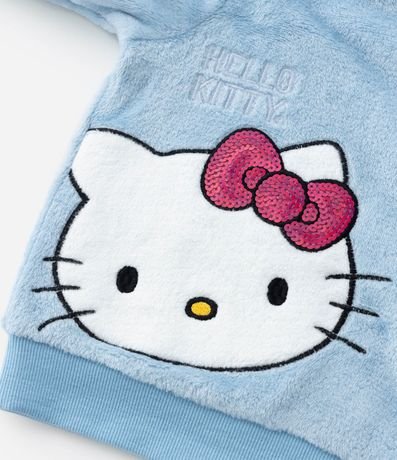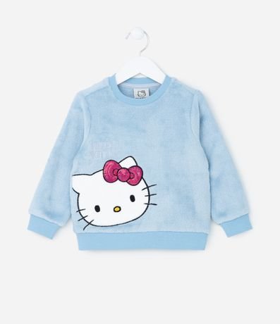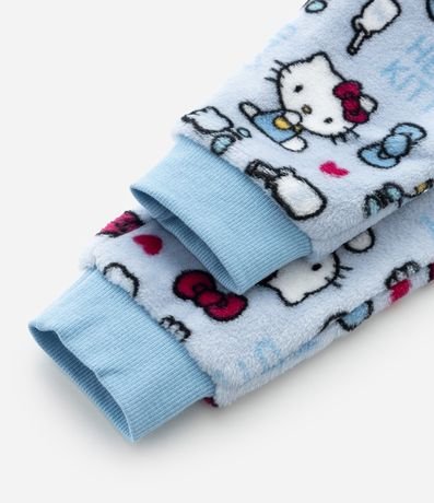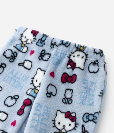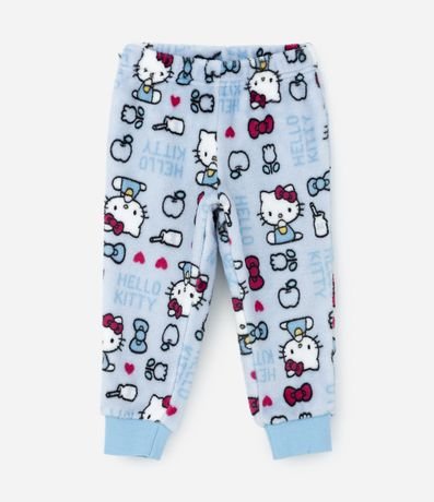 Ref: Pijama infantil em fleece quentinho, com blusa de gola redonda, manga longa e bordado da carinha da Hello Kitty com laço em paetês; já a calça possui cós elástico e estampas de Hello Kitty.