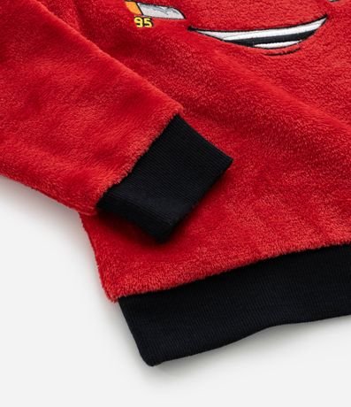 Ref: Pijama infantil confeccionado em fleece quentinho e ideal para dias frios, composto de camiseta manga longa e calça. Possui bordado do Relâmpago Mcqueen, de Carros, punhos e barra ajustados.