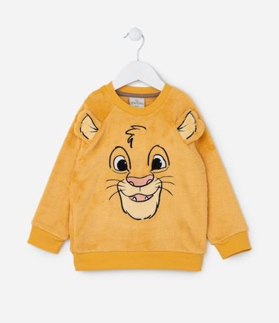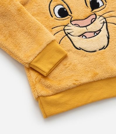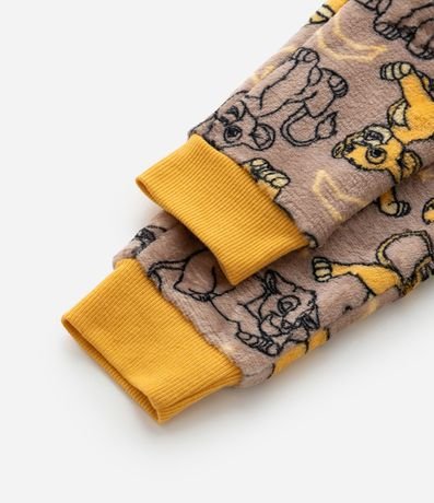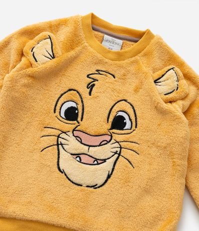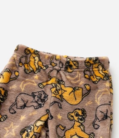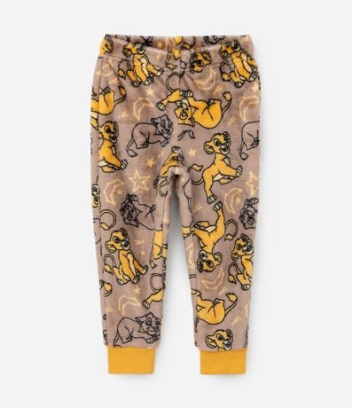 Pijama infantil confeccionado em fleece quentinho e ideal para dias frios, composto de camiseta manga longa e calça. Possui bordado do Simba, do filme Rei Leão na frontal, e calça com fundo de estampas do personagem. Punhos e barra são ajustados.