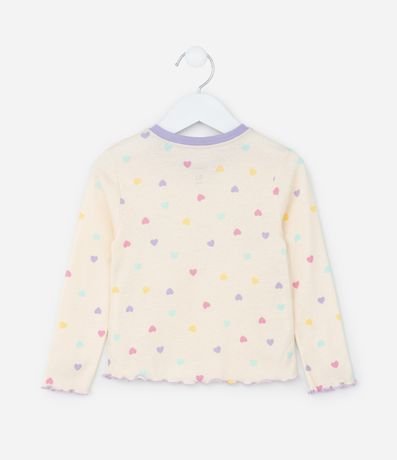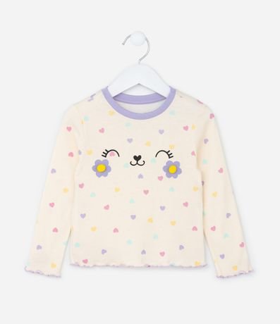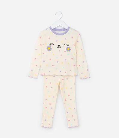 Ref: Conjunto de pijaminha infantil confeccionado em ribana, mais sustentável. Blusa com gola redonda, manga longa e calça com cós elástico. Possui estampa de carinha fofinha e frufru nas bordas.