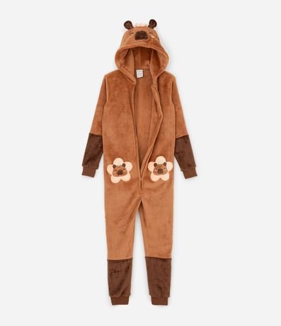 Pijama Infantil Jumper em Plush com Capuz Fantasia Capivara – Tam 4 a 14 Anos