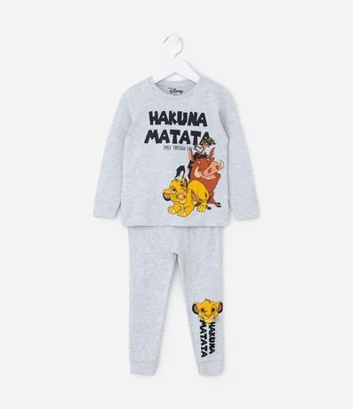 Pijama infantil longo confeccionado em meia malha de algodão certificado BCI, com blusa manga longa e estampa localizada de Simba, Timão e Pumba, personagens do clássico Disney O Rei Leão. Acompanha calça com cós elástico, punhos ajustados e estampa aplicada na perna.