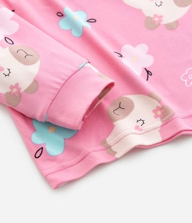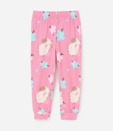 Pijama infantil longo confeccionado em plush com efeito peach touch e estampa fullprint de capivarinhas. A blusa possui gola redonda e mangas longas, enquanto a calça conta com cós elástico e punhos ajustados, mantendo estrutura confortável para o uso diário.
