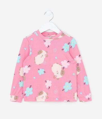 Pijama Infantil Longo em Plush com Estampa de Capivara – Tam 2 a 6 Anos
