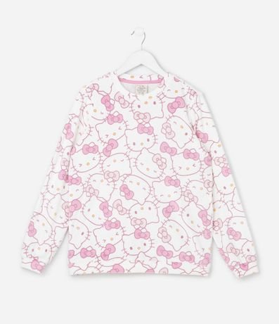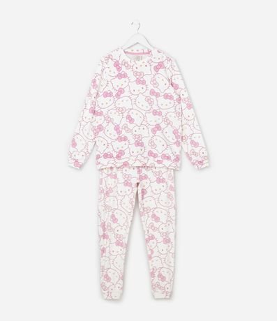 Ref: Pijama infantil longo confeccionado em plush felpado com blusa de gola redonda, mangas longas e estampa fullprint da personagem Hello Kitty. Acompanha calça com cós elástico e estampa coordenada, oferecendo estrutura macia, térmica e confortável para noites mais frias.