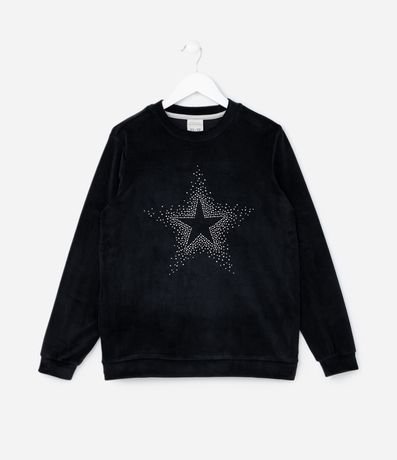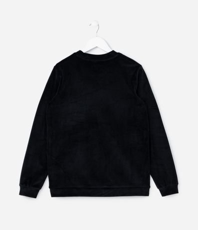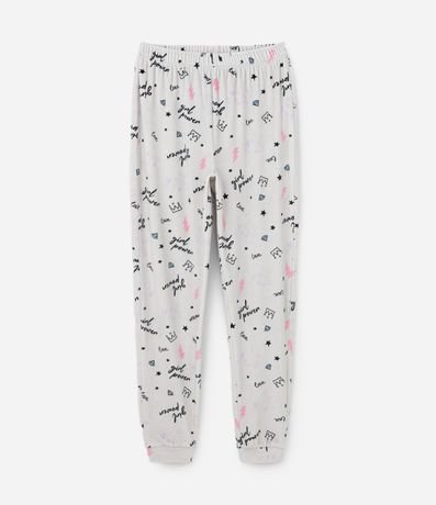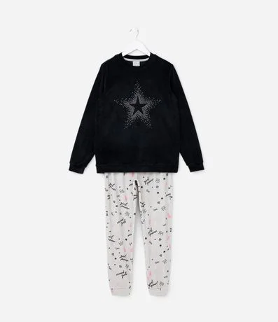 Ref: Conjunto de pijama infantil longo, confeccionado em plush, quentinho e composto por 02 peças: blusa e calça. A blusa possui gola redonda, mangas longas e estrela com strass. A calça possui cós elástico, punhos ajustados e estampa full print com ícones de coroa, raios e palavras.