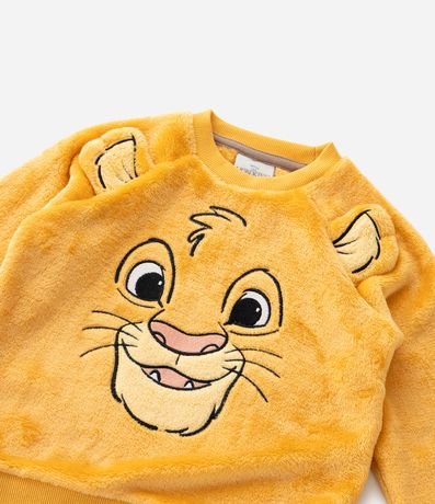 Pijama infantil confeccionado em poliéster certificado GRS, com fleece macio e aconchegante para dias frios. O casaco possui gola redonda, mangas longas e orelhas 3D aplicadas, com estampa do Simba do clássico da Disney. A calça tem cós elástico e estampa fullprint.