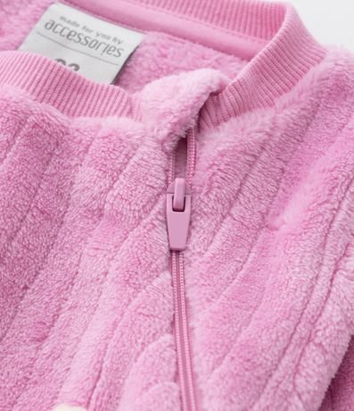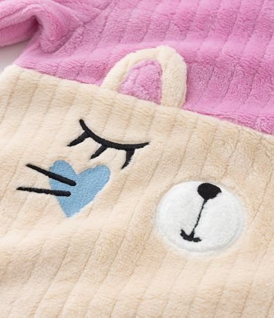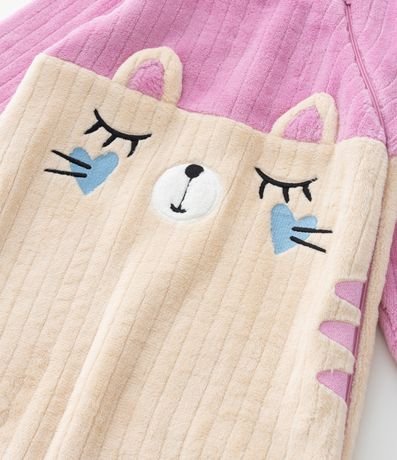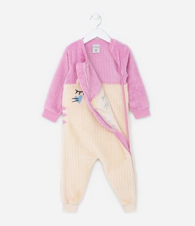 Ref: Pijama infantil longo, de modelo jumper e confeccionado em fleece quentinho. Possui zíper frontal, textura canelada e bordado carinha de gatinha.