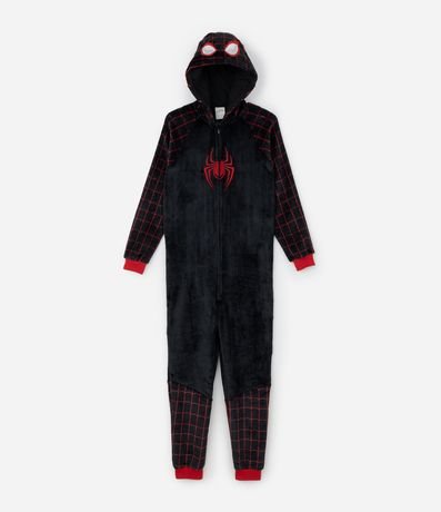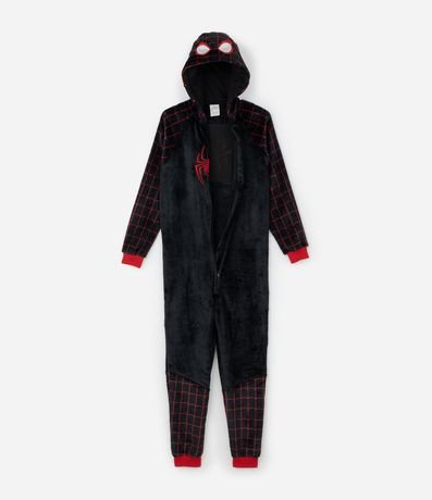 Ref: Pijama infantil longo, de modelo jumper e confeccionado em fleece quentinho. Possui zíper frontal e capuz com bordado do Homem Aranha.
