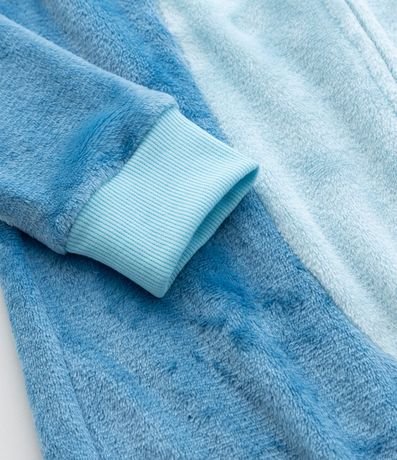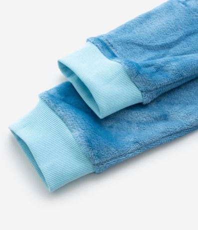 Ref: Pijama infantil confeccionado em fleece mais sustentável, no modelo jumper. Possui fechamento por zíper frontal e bordado cara do Stitch no capuz e orelhas em 3d.