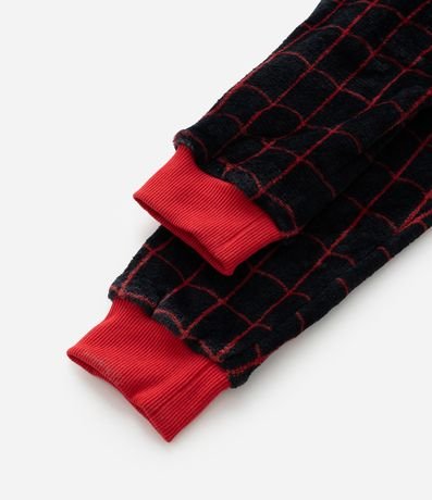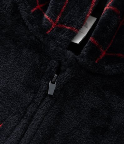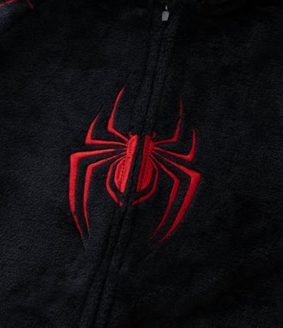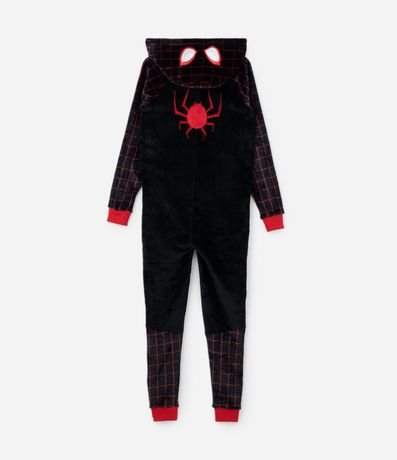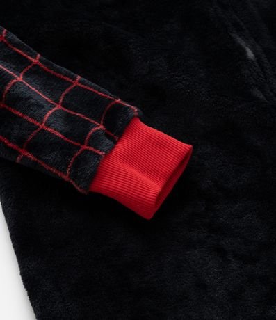 Ref: Pijama jumper infantil em fleece com estampa do Homem Aranha de Miles Morales, com capuz, mangas longas e punhos ajustados.