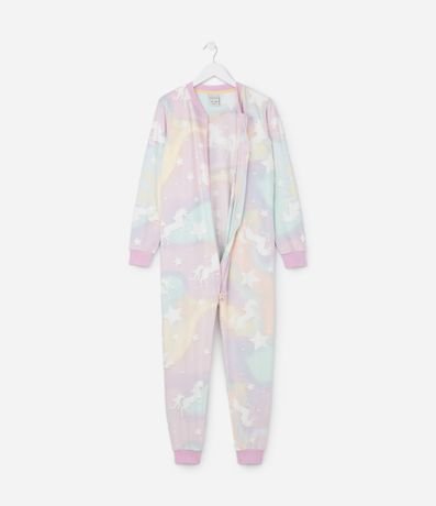 Pijama Jumper Infantil em Plush com Estampa Unicórnio - Tam 3 a 12 Anos