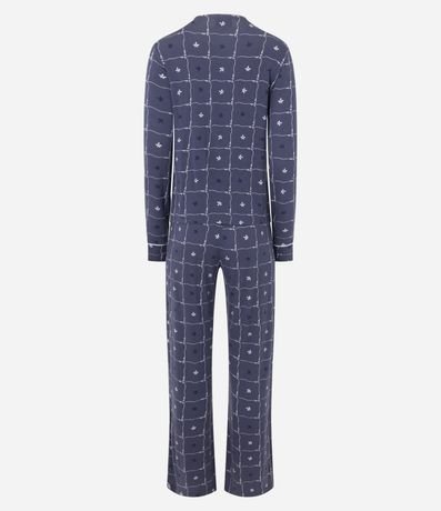 Ref: Pijama longo feminino confeccionado em viscolycra mais sustentável, no modelo americano. Composto por duas peças, sendo: Blusa com decote v, manga longa, abotoamento frontal e calça com cós elástico. Ambos com estampa de flores.
