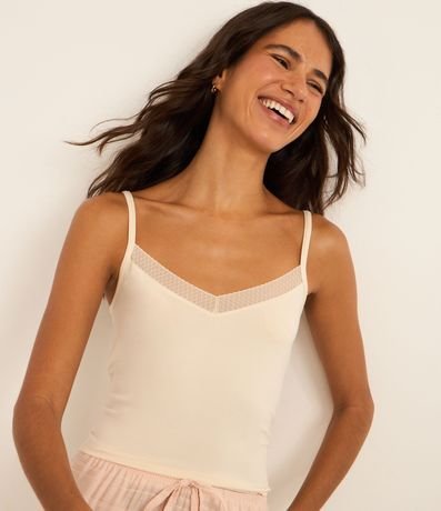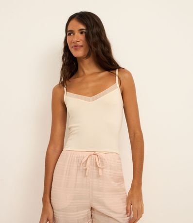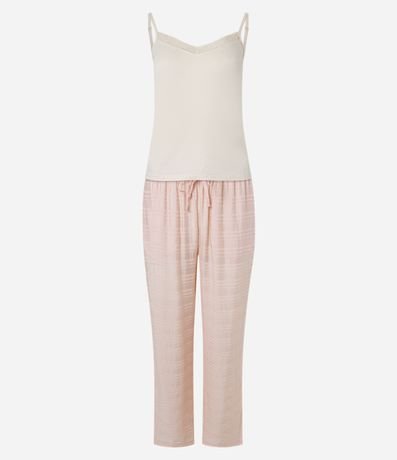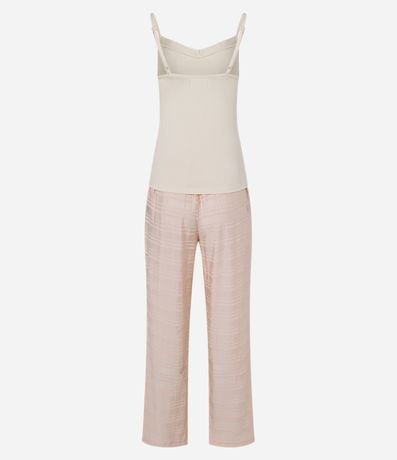 Ref: Conjunto de pijama com duas peças: blusa com alcinhas reguláveis e decote V; e calça com amarração na cintura e superfície texturizada.