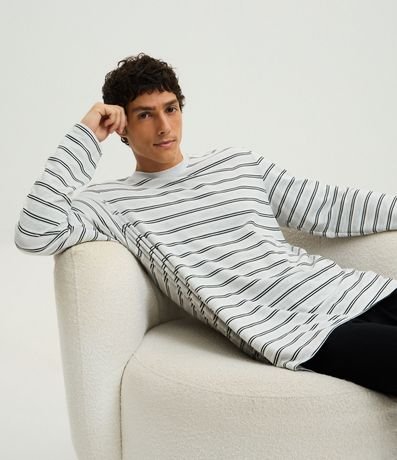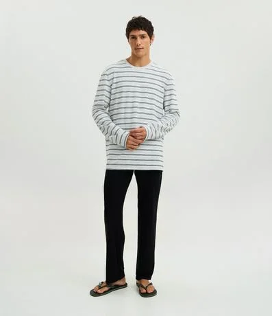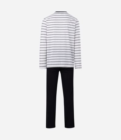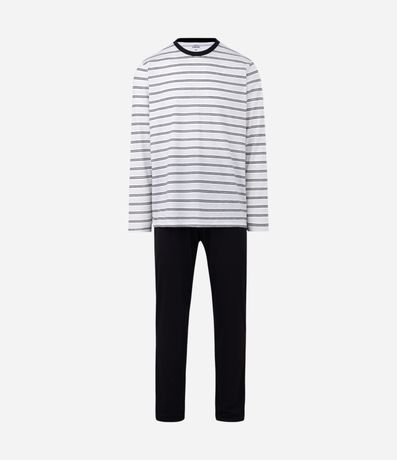 Ref: Conjunto de pijama alongado confeccionado em poliéster com camiseta de mangas longas com listras contrastantes e calça com elástico no cós.
