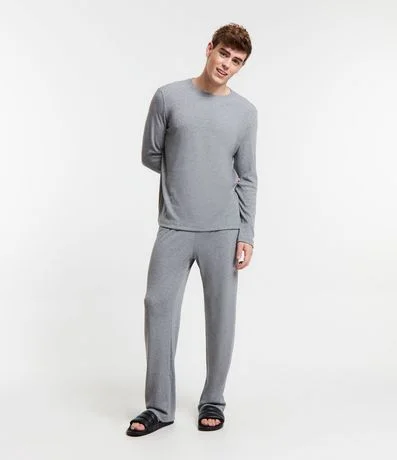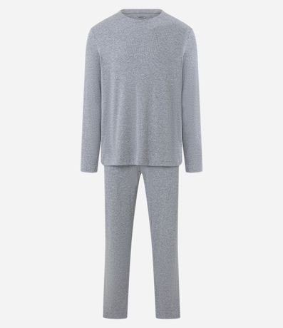 Ref: Pijama masculino longo, com camiseta manga longa, gola redonda e calça com cós elástico.