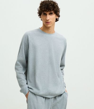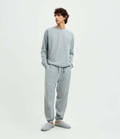 Pijama masculino longo, com camiseta manga longa, gola redonda e calça com cós elástico.