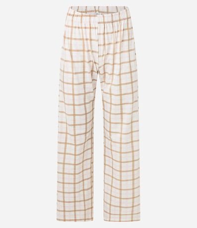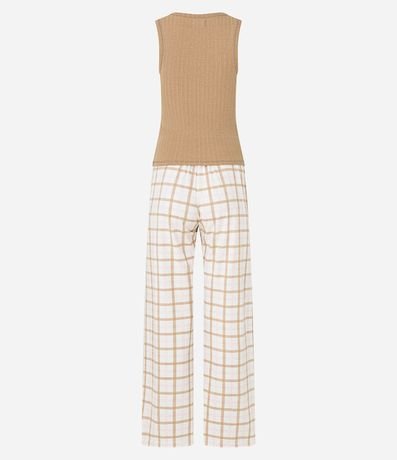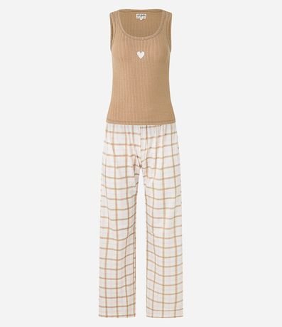 Ref: Conjunto de pijama confeccionado com algodão mais sustentável. São duas peças: regata canelada com estampa de coração; e calça com cintura elástica e estampa xadrez vichy.