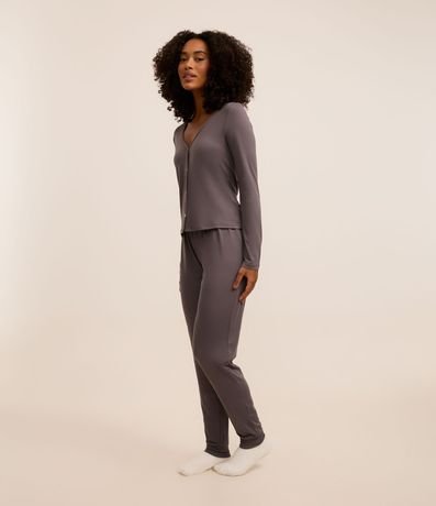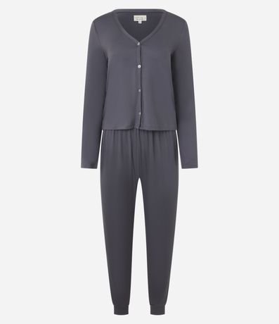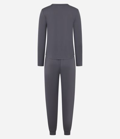 Ref: Conjunto de pijama longo com duas peças confeccionadas em peach touch sem estampa.