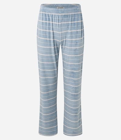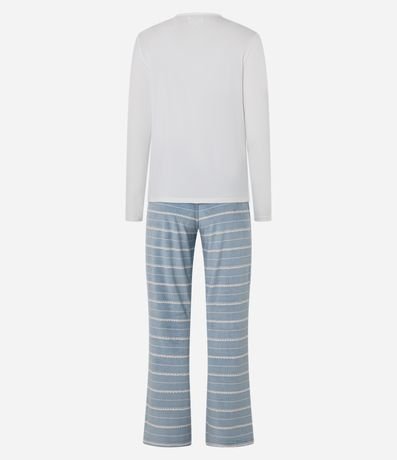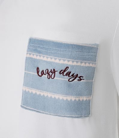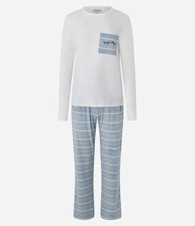 Ref: Conjunto de pijama longo feminino, quentinho, confeccionado em plush e composto por 02 peças: Blusa e Calça. A blusa conta com gola redonda, mangas longas e bolsinho contrastante no peito com lettering "lazy days". Já a calça possui cós elástico e padronagem de listras.