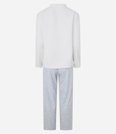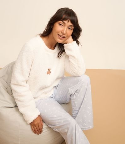 Ref: Pijama feminino longo confeccionado em sherpa com estampa smile. Calça com estampa de poá.