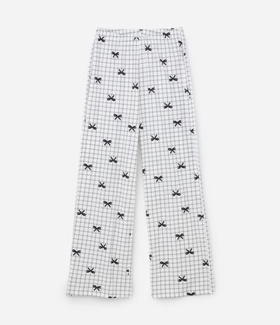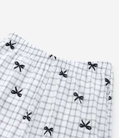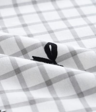 Ref: Conjunto de pijama longo de algodão para crianças, com duas peças: camiseta manga longa com gola redonda com estampa lettering em grafite; e calça xadrez com lacinhos, cintura elástica e punho ajustado.