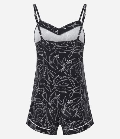 Ref: Pijama short doll feminino, confeccionado em malha com toque suave, blusa alcinha, decote V, short com cós elástico e estampa folhagens.