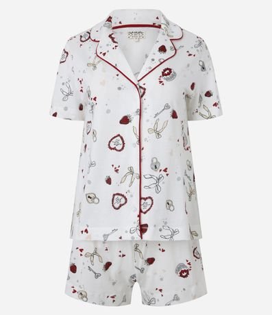 Pijama Short Doll Americano em Algodão com Estampa de ícones Girlies