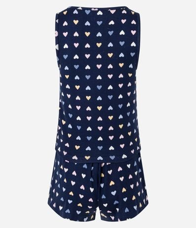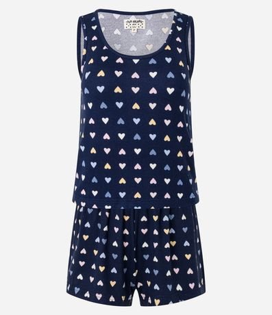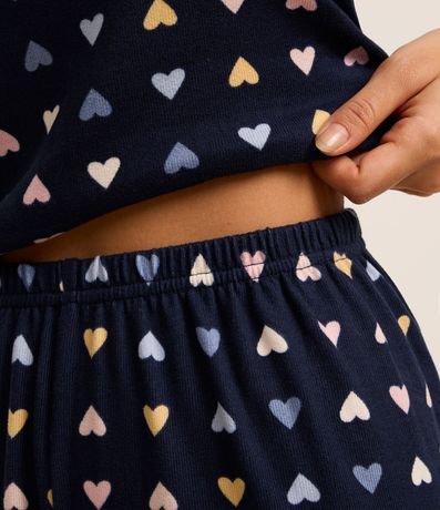 Ref: Conjunto de pijama confeccionado em tecido tricozado e estampado de coraçõezinhos coloridos.