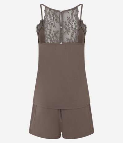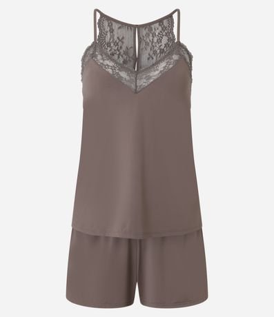 Ref: Pijama short doll feminino com alças finas e detalhes em renda super charmosos.