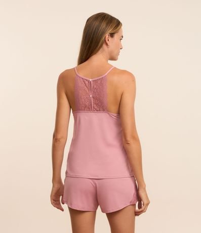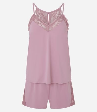 Ref: Pijama short doll feminino com alças finas e detalhes em renda super charmosos.