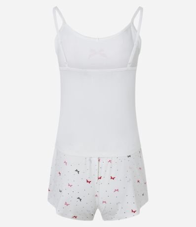 Ref: Pijaminha de verão com duas peças: blusa de alcinha com estampa Sweet e short com cintura elástica estampado de topinhos.