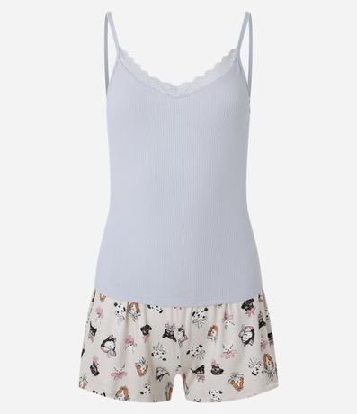 Ref: Conjunto de pijama feminino de alcinha confeccionado em ribana com estampa de pets.