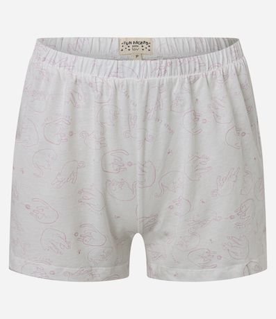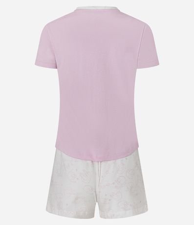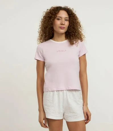 Ref: Conjunto de pijama confeccionado em algodão certificado BCI. São duas peças: blusa manga curta com estampa Lovely; e short com cintura elástica e estampa de gatinhos.