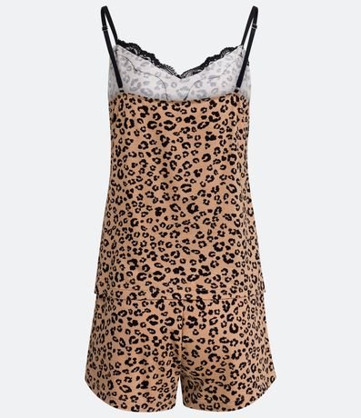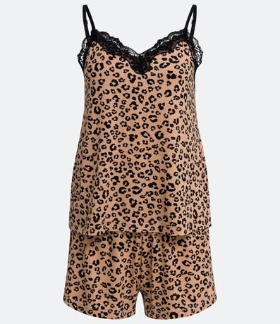 Ref: Pijama short doll, com 02 peças. Blusa com decote v, detalhe em renda, alcinhas reguláveis e short com cós elástico. O modelo confeccionado em meia malha, é fresquinho e oferece leveza e ótima respirabilidade ao corpo. A estampa animal print onça agrega muito estilo ao visual, sendo perfeito para curtir seus momentos de descanso com muito conforto e charme.