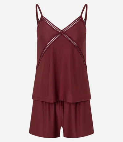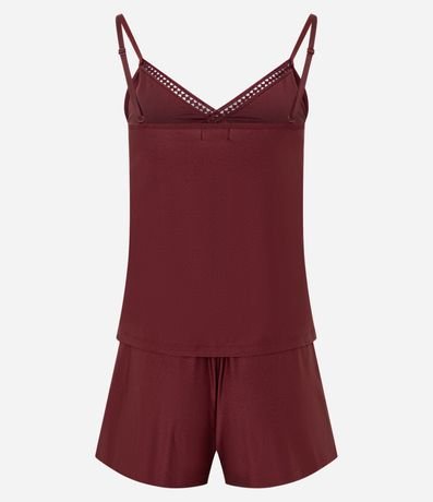 Ref: Conjunto de pijama short doll, confeccionado em microfibra, blusa com alças finas, decote em v, detalhe de aviamento e short com cós elástico.