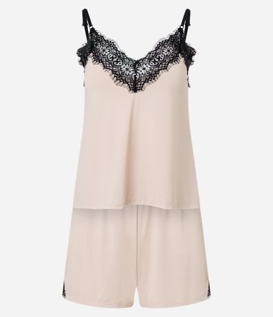 Pijama Short Doll em Microfibra com Detalhe de Renda Contrastante
