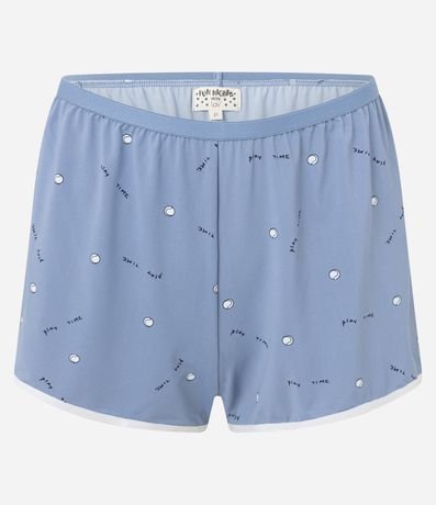 Ref: Conjunto de pijama fresquinho confeccionado em microfibra. São duas peças: blusa de alcinha regulável e decote V; e short runner com cintura elástica. Tudo estampado de bolinhas de beisebol e "play time".