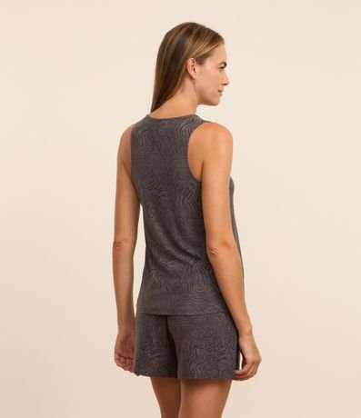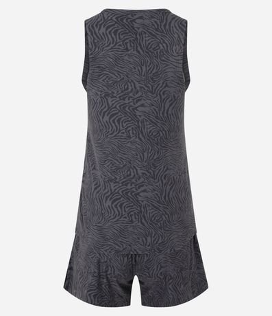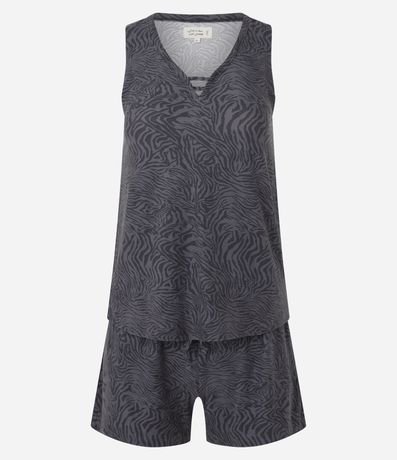 Ref: Conjunto de pijama short doll confeccionado em peach touch. São duas peças: regata com gola V; e short com cintura elástica e amarração. Tudo estampado de animal print zebrinha.