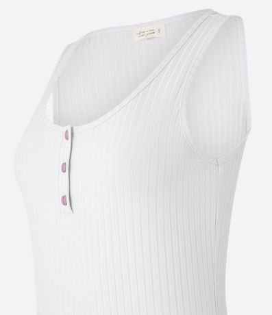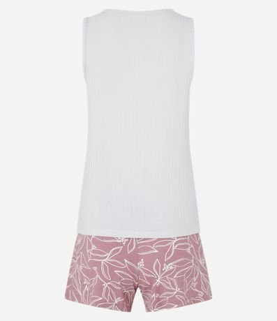 Conjunto de pijama curto com dias peças: regata canelada com botões no peitilho e short com cintura elástica e estampa de folhagem.