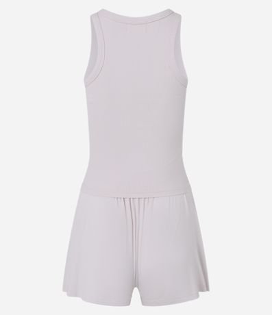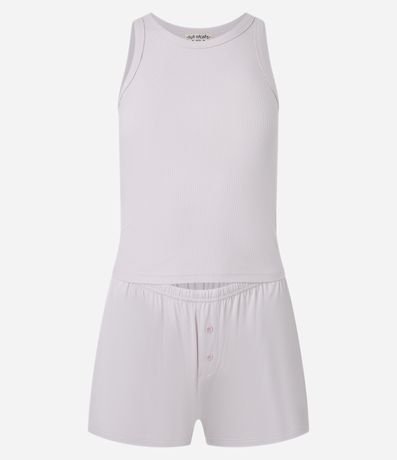 Pijama short doll confeccionado em ribana, com blusa de gola redonda, sem mangas, textura canelada e shortinho com cós elástico, botões aplicados, ambos sem estampa.