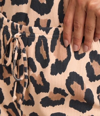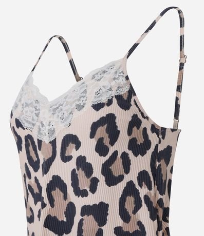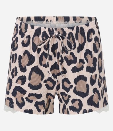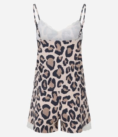 Ref: Pijama short doll em ribana composto por blusa de alças finas reguláveis, detalhe de renda no colo e short com estampa animal print.