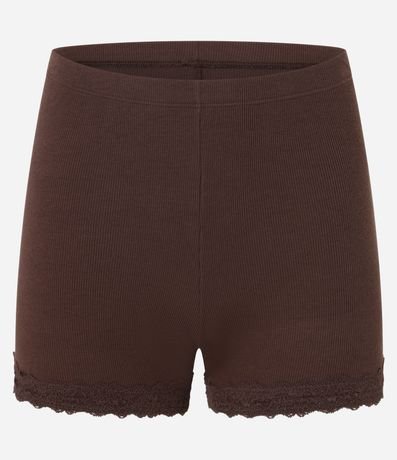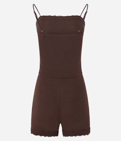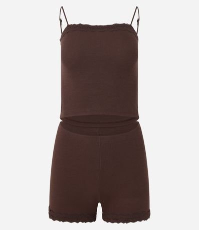 Ref: Conjunto de pijama short doll de ribana confeccionada seguindo boas práticas ambientais. A blusa tem alcinhas ajustáveis, decote reto e aplicação de renda. O short tem cintura elástica e renda nas barras.