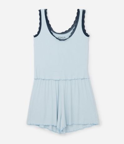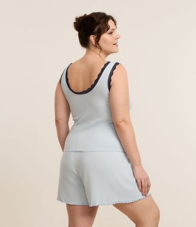 Ref: Conjunto de pijama fresquinho confeccionado em ribana de viscose. O conjunto é composto por uma regata com rendinha contrastante nas cavas e po um short com cintura elástica e barra frufru.