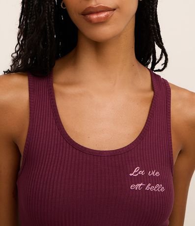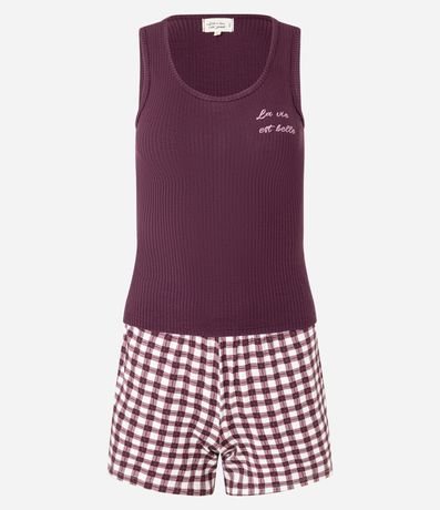 Conjunto de pijama fresquinho composto por duas peças: regata de ribana com bordado "la vie est belle"; e short de viscolycra com cintura elástica, amarração e estampa xadrez vixhy.