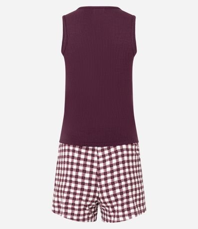 Pijama Short Doll em Ribana com Short Xadrez Vichy