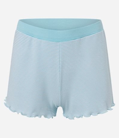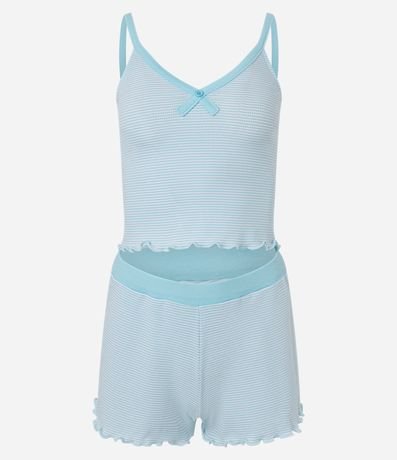 Ref: Pijama short doll confeccionado em viscose com gola V, botão frontal aplicado, alças finas e short com elástico no cós. Todo o conjunto possui estamparia listrada.